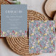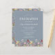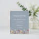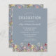 En vacker vattenfärgsblommigt gräns av vilda blommor dekorerar grund kant i det här trendiget boho studentfest inbjudan. Anpassa den vita texten på en dammig blå bakgrund med student namn i handskript, skolåret och klassåret i sans serif och datum, plats och OSA i serif-teckensnitt. Baksidan av kortet har en koordinerande mönster av vilda blommor på en dammig blå bakgrund.