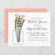 Vänner och familj i inbjudan för att hedra den blivande bruden med detta överkomliga Inbjudningskort för möhippan som har en mason burk av vilda blommor. Observera att vårt budgetområde med inbjudningar inte omfattar anslag. Du kan beställa dem separat via vår butik eller från din favoritbutik.