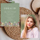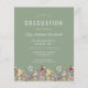 En vacker vattenfärgsblommigt gräns av vilda blommor dekorerar grund kant i det här trendiget boho studentfest inbjudan. Anpassa den vita grönten på sidans bakgrund med student namn i handskriftsskript, skolåret och klassåret i sans serif samt datum-, plats- och OSA-information i serif-teckensnitt. Byt enkelt ut exempelbilden på baksidan mot ett lodrät av student.