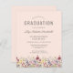 En vacker vattenfärgsblommigt gräns av vilda blommor dekorerar grund kant i det här trendiget boho studentfest inbjudan. Anpassa grått-texten för kol på en rosa med student namn i handskriftsskript, skolåret och klassåret i sans serif och datum, plats och OSA i serif-teckensnitt. Kortets baksida är solid rosa.