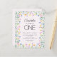 Den söt budgeten för första födelsedagsfest inbjudan är dekorerad med ömtåliga, handgjorda blommor i pastellskuggor på mjuk rosa. Enkelt anpassade. Använda Verktyg i Design om du vill ändra texten storlekt, stil eller färg. Du kommer inte att hitta den här bilden från andra designers när vi skapar vår teckning. Teckning © Michele Davies.