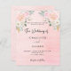 En rosa bakgrund som dekoreras med små gyllene gnistor, punkter. Rosa, vita blommigtar och eukalyptus greenergiy. Anpassa och lägg till namn och information. Svart färgad brev. Elegant-skript Bakåt: social-medieikoner, qr-kod till webbplatsen bröllop. Inbjudan finns också i vår butik utan ikonerna på baksidan.