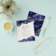 Budgetagate Geode Navy Blue och Gold Foil Vår eller Summer Bröllop Inbjudningskort för möhippa - innehåller ett modernt skript för elegant och för speciella bron i firande.