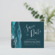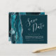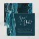 Den här eleganten sparar datumkortet med en tealblått vattenfärgsagat gräns som trimmas med faux silver glitter. Anpassadet kombinerar handskriftsskript för silver grått, tryckplåt och kursivt typsnitt på mörkens bakgrund. Den omvända sidan har en passande teal och silver agate-design.