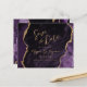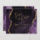Med det här elegant bröllop kan du spara datumkortet med en bakgrundsbild av lila vattenfärgsagat som trimmas med faux guld glitter. Anpassadet kombinerar modern handskrift, tryckplåt och kursivt typsnitt med guld-färgad. Den omvända sidan har en samordnande lila och guld agate-utformning.