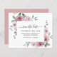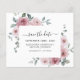 Budgeten Dusty Rosa Blommigt Ro och Eucalyptus Botanical Grey Watercolor Vår eller Summer Bröllop spara datum - innehåller vackra manustypografi och elegant med moderna tropiska botaniska blommor och grönenergi för den speciella Bröllopsdagen firande.