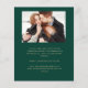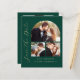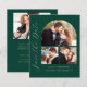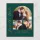 Den här enkla, minimalistiska Spara datumkortet har en fotosamlingsplats, med ett foto överst och två kvadratiska foton nedanför. Orden "Spara datumet" springa vertikalt ökar den lämnat marginalen i handskriftsskriptet elegant guld färgad. Parets namn, datum och stad i bröllop visas under fotokollage i sans serif-teckensnitt på en grönt med frammarsch. Lägg till ett fjärde foto med vågrät och ett mer detaljerat meddelande med ytterligare information på baksidan.