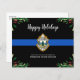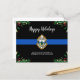 Skicka God jul hälsning till vänner, företag, medarbetare i tillsatta lagar och ert samhälle med detta unika Thin Blue Line Polis-julkort - Modern svart och blå med grå löv och bär. Anpassa med polisavdelningens logotyp, meddelande och avdelning. Budgetkorten god jul måste skickas som vykort med för stor storlek, så de kan åläggas en vanlig portoavgift men behöver inte ett kuvert eller en returadressetikett. COPYRIGHT © 2020 Judy Burrows, Black Hund Art - Med alla Höger reserverade. Budgeterat vykort för Thin Blue Line Polisavdelning Julens Helgdag