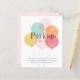 Denna roliga och moderna födelsedagsinbjudan för barn har handritade ballonger i en lite oväntad färgpalett. Låt denna inbjudan bidra till att sätta temat för ditt barns kommande födelsedag. Del av kollektionen Up up and away av Stacey Meacham. Leta efter matchande tillbehör som servetter, tallrikar, tackkort, presenter och fler roliga färgalternativ i kollektionen.