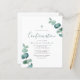 En modern inbjudan till bekräftelse av eukalyptus greenery. **LÄS FÖRE KÖP** 1. Budgetstationeringsåtgärder: 4,5 x 5,6 tum och passar in i A6-kuvert. Du kan lägga till vita kuvert i din beställning. 2 Varje lakan är en artikel - ingen styckning krävs. 3 Standardkardstammen är ljust vit med en halvglans avslutande och 110 lbs vikt som lämpar sig för kontorsbruk. 4 Det pappra satatalternativet är ett tunnare papper på 80 lb, vilket mer liknar magasinsidor än kardstock. 5 Om du gör ändringar och designen beskärs eller inte ser höger ut på skärm, användor du Live Design Service för att hjälpa dig att åtgärda det. 6 Din beställning går direkt till skrivaren. Vad du ser på skärm är vad som kommer att skrivas ut och skickas till dig. Kontrollera stavningsfel eller felaktig information tre gånger innan du ställen din beställning.