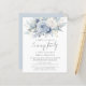 Ett mindre budgetprisalternativ på 4,5 x 5,6 tum på en 110 g/m halvglöd, liknande tjocklek som ett vykort. Det finns EN per lakan. Budget Dusty Blue Blommigts QR Code Bröllop Evening Party bjudande in. Lägg till QR-koden på vägningssidan på webbplatsen för platsen på baksidan eller ta bort den om den inte behövs. QR CODE - Ändra bara den här exempeladressen till URL:en för den sida du valt på webbplatsen bröllop och QR-koden i den här designen uppdateras automatiskt. En informell typografi i svart för huvudrubriken Evening Party som kompletterar resten av texten som du lätt kan anpassa.