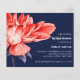 Stunning och Elegant Inbjudningskort för möhippan, med ett magnifikt Dahlia Flower i blomning i vattenfärgspaletten med röda nyanser av rik orange och blå lila löv på lämnat av kortet. Dina uppgifter om party visas på ett snyggt sätt på högerna, i en chic med fet stil och serif-teckensnitt i klassisk grått färg. Kortomvänd i en kontrasterande grått färg med utrymme för extra-text som register, webbplats, värd för eller annan användbar information. Det är mycket enkelt att anpassa med mallen. OBSERVERA: ENVELOPES ÄR NOTERADE.