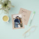 Budgetera Bröllop Boho Terracotta Spara datumkort som har ett foto på framsidan. Spara datumkorten innehåller en modern handskriven kursiv skripttypografi som är elegant, enkel och modern till använda efter att du har minimalistisk enkel bröllopsdag firande.