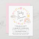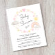 Budgetvänlig nybörjarinbjudan i flicka med vismisk boho-dusch med rosa och gult vattenfärger från regnbåge, sol, hjärtan, stjärnor, måne och moln.