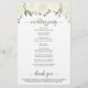 Dessa bröllopsprogram är eleganter och smakfulla, samtidigt som de fortfarande är budgetvänliga. Utformningen har en avund av handmålad vattenfärg ro och blommor i elfenbensnyans, vit och grädde, omgivna av eukalyptus löv och trädgårdslöv. Typografin har gammalt manusyrgrafi, och det finns utrymme för detaljer om ceremonin, brudens sida, och ett kort-tack.