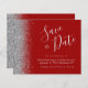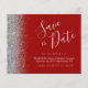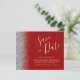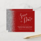 Den här eleganten sparar datumkortet med silver faux glitter gräns. Anpassadet kombinerar handskript för silver grått, tryckplåt och kursivt typsnitt på en krimson röd bakgrund. Den omvända sidan har en passande design för skript och silver.