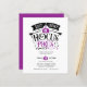 Med ord, "Just a Bunch of Hocus Pocus" i en lila, vit och svart grönt färg och återtypografi stil över vit bakgrund är dessa Halloween fest inbjudningar perfekter till inbjudan era vänner och familj! Anpassa med dina Halloween fest-detaljer under i vit text på svart bakgrund. Färg är utbytbart!