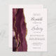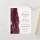 Den här elegantens lämnat kant har en modern bröllopsinbjudan med en burgundisk vattenfärgad agat gräns som trimmas med faux guld glitter. I anpassadet kombineras handskrift, tryckplåt och kursivt typsnitt i kol-grått på rosa. På baksidan finns utrymme för information om bröllop på en solid bakgrund, tillsammans med en QR-kodgäst som kan söka efter webbplatsen och OSAN. En perfekt färg-kombination för ett fallbröllop!