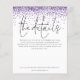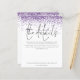 Bröllop: Lila Glitter Confetti-hölje. Ett budgetalternativ på 4,5 x 5,6 tum som är prist för att informera gästerna om alla detaljer. Finns i ett SEMI GLOSS 110 lb-kort LAGRAR, vilket är standardalternativet (rekommenderas för inbjudningar), ELLER SATIN AVSLUTAR 80 lb PAPPER LAGRAR (perfekt för bilagor). Kuvert är ett extra som tillval och är något större än det storleka kortet. Berätta för dina gäster om detaljer som riktningar och bostadsinformation för bröllop när du skickar inbjudningar. Den här eleganten har ställt in stor typografi för snyggten för rubriken. Information och resten av texten kan enkelt personlig till orden. En lila faux glitter gräns ligger överst på båda sidor. Du kan välja valfri färg för färg för text och bakgrund på båda sidor genom att anpassa ytterligare alternativ.