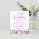 En söt vildblomma gräns dekorerar grund i vuxen 100 födelsedagsfest inbjudan. Blå-, gult- och orange blommor skapar en färgstark design och lycklig för att fira denna milstolpe-födelsedag. Modern och enkel kalligrafi i lila gör att trendiget får en ny beröring till behållan. Det öppna och omsorgsfria bokstavsflödet koordinerar perfekt med daisy och knölar. Denna 100-årsinbjudan anger perfektens ton när gästerna får den. Ett trevligt val för en vår eller sommar-födelsedagsfest. Det här objektet är en del av den Söt Lila Wildblomsamlingen. Använda det så att du enkelt skapar perfektens 100-åriga inbjudan och party tema.