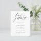 Yikes! Behålla dina gäster uppdaterade med information om ditt omschemalagda eller uppskjutna evenemang med detta minimalistiska och moderna senareläggningskort med enkel modern svartvit typografi. "Kärlek är patient" visas i chicens elegant calligraphy font. Som en del av budgetvalet här på Zazzle, är dessa inbjudningar inte komar med kuvert och passar inte heller in i ett kuvert av standardstorlek. Den närmaste storleka är A6, men det kommer att finnas en lucka på ungefär en halv tum. Om du inte har något emot att det saknas snus kan du använda så allmänt tillgängliga A6-kuvert. I annat fall kan denna design överföras till ett standardformat 5 x 7 (som levereras med kuvert) med hjälp av designöverföringen verktyg. Som en ungefärlig guide skulle 100 inbjudningar till budgeten (inklusive en volymrabatt) kosta cirka 39 dollar medan 100 standardbelopp på 5 x 7 inbjudan inklusive kuvert skulle kosta cirka 135 dollar. Ditt val kan variera beroende på Zazzles tillgängliga promokoder, försäljning på hela platsen eller prisförändringar.