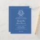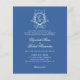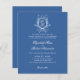 Den här bröllopsinbjudan har en klassisk utformning och elegant med ett förfinat blått och vitt färg-schema. Centrumbiten är en sofistikerad monogramslimmad vapensköld som ger en personlig. Inbjudningsinformationen visas i ett skript och seriftypsnitt för eleganten, där inslag kombineras med traditionellt och tidslöst för att skapa ett vackert tillkännagivande för din speciella dag.