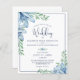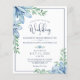Elegantens bröllopsinbjudningar i blommigten tryckta på lättviktspapper tryckta på lättviktsoptimala pappra ideal för konservativets budgetar och/eller handleverans till gäster med ljus, hårfärgad dammblått och marin blåblomma och grön. Kontakta designern via Zazzle-Chattan eller makeitaboutyoustore@gmail.com om du vill att designen ska ändras, på en annan produkt eller samordnande artiklar.