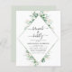 Budgeten Grey Botanical Eucalyptus Foliage Greenery Watercolor Vår bröllop Brunch och BubLY Champagne Inbjudningskort för möhippa mot vit bakgrund - innehåller modern vacker manustypografi och elegant med modernt botaniskt löv och grön för att speciella Briden ska vara firande.
