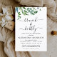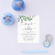 Budgeten Brunch och BubLY Champagne Greenery Botanical Watercolor Vår bröllop Inbjudningskort för möhippa på vit bakgrund - innehåller vacker och elegant manustypografi med modernt botaniskt löv och grönt för den speciella bron att vara firande.