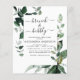 Budgeten Brunch och BubLY Champagne Greenery Botanical Watercolor Vår bröllop Inbjudningskort för möhippa på vit bakgrund - innehåller vacker och elegant manustypografi med modernt botaniskt löv och grönt för den speciella bron att vara firande.