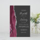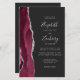 Den här elegantens lämnat kant har en modern bröllopsinbjudan med en burgundisk vattenfärgad agat gräns som trimmas med silver faux glitter. Anpassadet kombinerar handskrift, tryckplåt och kursivt typsnitt med silver grått mot svart bakgrund. Lägg till ytterligare information på baksidan tillsammans med en QR-kod som hjälper dina gäster att besöka webbplatsen för bröllop.