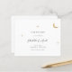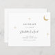 En modern kallelseinbjudan till ett lågprisbröllop har en enkel och elegant utformning. Den innehåller en guld-folie måne och stjärnor som är försiktigt gnistra och som är uppställda mot en ren bakgrund. Inbjudan användor klassisk serif-typografi, som ger en traditionell och formell kontakt med sitt vackra och tydliga stil.