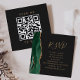 Det moderna kant-kortet för webbplatshöljet i bröllop på den här eleganten, som är lämnat för hand, har ett framväxande vattenfärgat grönt i gräns som trimmas med faux guld glitter. Rubriken visas i handskriftsskript för guld-färgad, med texten anpassade nedanför i mönsterteckensnitt på en bakåtriktad bakgrund. Ange URL:en till webbplatsen för bröllop för att skapa en QR-kod som ersätter exempelbilden på den andra sidan, ramad av orden "sök mig till OSA".