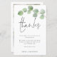 Eucalyptus Bröllop 3 Fotoofferttack. En större storlek på 5,5 x 8,5 tum på en pris, på ett SEMI GLOSS 110 lb CARD LAGRAR, underbar för inbjudningar, ungefär med samma tjocklek som ett vykort, eller en elegant på 110 lb LINEN lagrar - för en lyx, något tunnare känsla till underbart värde. OBSERVERA ATT DE VALFRIA ENVELOPES ÄR EN LITEN STÖRRE STORLEK PÅ CIRKA 6,75" x 9". Detta storleka budgetalternativ finns även i andra pappra val. FELT 100 lbs papper är en färgad, INTE vit, vilket ger en kraftig tryckning. MATTE 80 lbs pappra lagrar är ljust vitt, för skarp utskrift, underbart för dina menyer och program, medan SATIN 80 lbs pappra är tunt och lätt, perfekt för höljen. En elegant ställer in handskriftsskript för stil för för tack och elegant grönt eucalyptus lövs ovan. Resten av texten på båda sidor kan du enkelt anpassa med dina detaljer. På baksidan ersätter du exempelbilderna med dina tre favoriter från speciella dag.