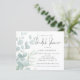 Eucalyptus Powder Blue Möhippa. Ett budgetmässigt prist mindre än 4,5 x 5,6 tum alternativ. Finns i ett SEMI-GLOSS 110 lb-kort LAGRAR, vilket är standardalternativet (tjockare för inbjudningar), ELLER SATIN AVSLUTAR 80 lb PAPPER LAGRAR (perfekt för bilagor). Kuvert är ett extra som tillval och är något större än det storleka kortet. Fintvätt eukalyptus lämnar gräns den lämnat, tonar mot mitten och täcker sedan delvis över av texten till högerna. Möhippan finns i ett handskript för snyggten. Anpassa enkelt resten av texten till dina egna detaljer.