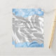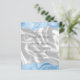 Den moderna bröllopsinbjudan på övre och grund kant i eleganten har en baby blue pastellfärgad agate i gräns som trimmas med faux silver glitter. Med anpassadet text kombineras handskrift, sans serif och italic typsnitt i kol-grått på en bakgrundsbild av vitt silke. Den omvända sidan har en passande baby blue agate- och vit silke-design.