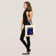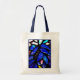 Den här vibrerande väskan har en bild av lysande blått glas i nedfläckaden.