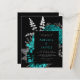 Den här eleganten innehåller den moody bröllopsinbjudan en lush, romantisk blommigt bouquet i tårblått med silver faux foil och glitter blad på svart bakgrund. Anpassa grått- och teal-texten i snyggt typsnitt på en mörk-rektangel. Den omvända sidan är helsvart.
