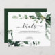 Budgeten Grey Foliage Watercolor Vår bröllop Elegant och Modern bjudning Bröllop Information Infoga kort på vit bakgrund - innehåller vacker och elegant skripttypografi med modernt botaniskt löv och grönt för den speciella Bröllopsdagen firande.
