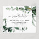 Budgeten Grey Foliage Watercolor Vår bröllop Elegant och Modern Save the Date on White - innehåller vacker manustypografi och elegant med modernt botaniskt löv och grönt för den speciella Bröllopsdagen firande.