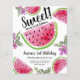 Mönster var hand plockade och målade av mig, Valarie. Endast tillgängligt i mina butiker. Gör den till en egen genom att redigera texten. Cute whimsique water melon mönster med roligt snabbt typsnitt! Perfekt för sommartid födelsedagsfester.
