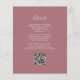 Den lämnat kant i eleganten med den moderna bröllopsinbjudan har en rosa vattenfärgsagat gräns som trimmas med faux guld glitter. Anpassadet kombinerar blek handskrift, tryckplåt och kursivt typsnitt på en djup dammig bakgrund i ro. På baksidan finns utrymme för bröllop-information på en solid dammig ro-bakgrund, tillsammans med en QR-kodgäst som kan söka på din webbplats och OSA, vilket sparar kostnaderna för utskrift och utskick av separat OSA