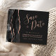 Den här eleganten sparar tidskortet med en svart vattenfärg gräns som trimmas med faux ro guld glitter. Anpassadet kombinerar handskriftsskript för ro färgad, kopparplåt och kursivt typsnitt på en grått-bakgrund för kol. Den omvända sidan har en matchande svartvit och ro guld-agate-design.