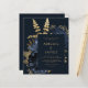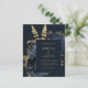 Den här eleganten innehåller den moody bröllopsinbjudan en lush, romantisk blommigt bouquet i marinblått med guld faux foil och glitter blad på mörkens bakgrund. Anpassa guld-färgad-texten i typsnitt snyggt på en mörk-rektangel. Den omvända sidan ger plats för bröllop-information på en solid bakgrund, tillsammans med en QR-kodgäst som kan söka igenom för att besöka webbplatsen och OSAN, vilket sparar kostnaderna för att skriva ut och skicka separat OSA kort.
