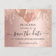 Observera att det här Spara datumet är pappert och mycket tunt. Kuvert ingår inte. Om du vill ha ett tjockare Spara datumkortet (samma design) kan du besöka vår butik. Ett girigt och trendig Spara datum för en Quinceañera, 15:e födelsedagsfesten. En övertoningsbakgrund i ro guld som dekoreras med faux glitter-droppar, gnistor och ballonger. Anpassa och lägg till datum och namn/ålder. Texten: Spara datumet skrivs med ett stort trendig-handskript i stil.