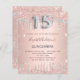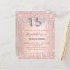 En modern, snyggt och glamorös inbjudan till en flickas Quinceañera, 15:e födelsedagsfesten. En faux ro guld-metallisk bakgrund tittar med faux ro guld och silver glitter. Namn är skrivet med ett modernt skript för färgaden ro guld i mörk, skrivet med stil. Anpassa och lägg till information om party. Nummer 15 är skript med silver-ballong stil.