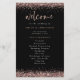 Budgetera det svarta Bröllopsprogrammet Ro Guld Glitter. Storleka 5,5 x 8,5 tum på en budgetpris, på en elegant 110 lb LINEN lagrar - för en lyxkänsla till underbart värde är detta perfekt för program, inbjudningar och menyer osv. Detta storleka budgetalternativ finns också tillgängligt i andra pappra val. SEMI-GLOSS 110 lb-kortet lagrar har ungefär samma tjocklek som ett vykort, så fungerar också bra för inbjudningar. FELT 100 lbs papper är en färgad, INTE vit, vilket ger en kraftig tryckning. MATTE 80 lbs pappra lagrar är ljust vitt, för skarp utskrift, underbart för dina menyer och program, medan SATIN 80 lbs pappra är tunt och lätt, perfekt för höljen. OBSERVERA ATT ALTERNATIVET ENVELOPES ÄR EN LITEN STÖRRE STORLEK PÅ CIRKA 6,75 x 9 tum. Denna elegant har faux ro guld gräns på vardera sidan. Välkomsthälsan finns i ett informellt handskript i stil och resten av ord kan du lätt anpassa.