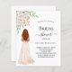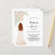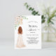 En vit bakgrund. En brud, vita blommor och grön. Anpassa och lägg till information om namn och party. 1 lakan = 1 inbjudan tryckt kant till kant.