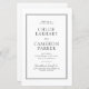 Minimalistisk klassisk bröllopsinbjudan som innehåller två kvadratmeter gräns med serif-typografi och monogram längst bak.