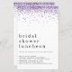 Glitter Lila Möhippa Luncheon Inbjudan. En större storlek på 5,5 x 8,5 tum på en pris, på ett SEMI GLOSS 110 lb CARD LAGRAR, underbar för inbjudningar, ungefär med samma tjocklek som ett vykort, eller en elegant på 110 lb LINEN lagrar - för en lyx, något tunnare känsla till underbart värde. OBSERVERA ATT DE VALFRIA ENVELOPES ÄR EN LITEN STÖRRE STORLEK PÅ CIRKA 6,75" x 9". Detta storleka budgetalternativ finns även i andra pappra val. FELT 100 lbs papper är en färgad, INTE vit, vilket ger en kraftig tryckning. MATTE 80 lbs pappra lagrar är ljust vitt, för skarp utskrift, underbart för dina menyer och program, medan SATIN 80 lbs pappra är tunt och lätt, perfekt för höljen. Mycket tomt utrymme för en contemporary stil och en gräns av lila Faux glitter överst på vardera sidan under lite gnistra. Tillfälle-huvudet är stort i gemener av snyggt med detaljerna i grund. Anpassa texten till dina egna detaljer.